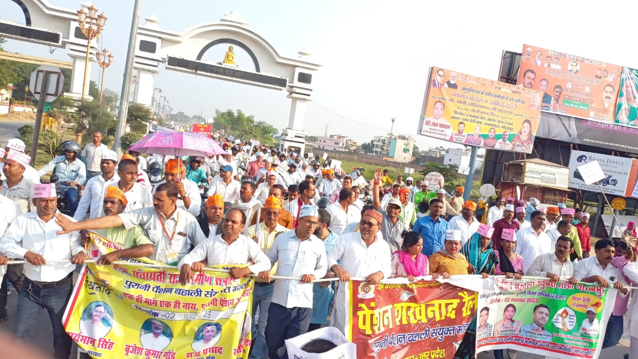 प्रदेश महामंत्री, यू.पी.सिंह उत्तर प्रदेश फेडरेशन आफ सर्विस मिनिस्ट्रीएल सर्विसेज,नंदलाल यादव क्षेत्रीय मिनिस्ट्रीएल एशोसिएशन लोक निर्माण विभाग, आर. के.पाठक क्षेत्रीय अध्यक्ष शिक्षा विभाग,एवं संगठन के कर्मचारियों का विशाल जनमानस पेंशन शंखनाद महा रैली शहर के विभिन्न चौराहों से होते हुए जिला अधिकारी कार्यालय पर जिला अध्यक्ष के द्वारा ज्ञापन दिया गया।और तरह-तरह के बैनर, झंडे, तख्ती, इस्तेहारों एवं नारों के माध्यम से हजारों कर्मचारी राज्य सरकार एवं केन्द्र सरकार से पुरानी पेंशन बहाली के लिए पुरजोर तरीक़े से अपनी माँग की। जिला अध्यक्ष रमेश भारती ने कहा की अगर हमारी पुरानी पेंशन बहाल सरकार नही करती हैं तो हम शिक्षक कर्मचारी 2024 में सरकार उखाड फेकने का कार्य करेंगे