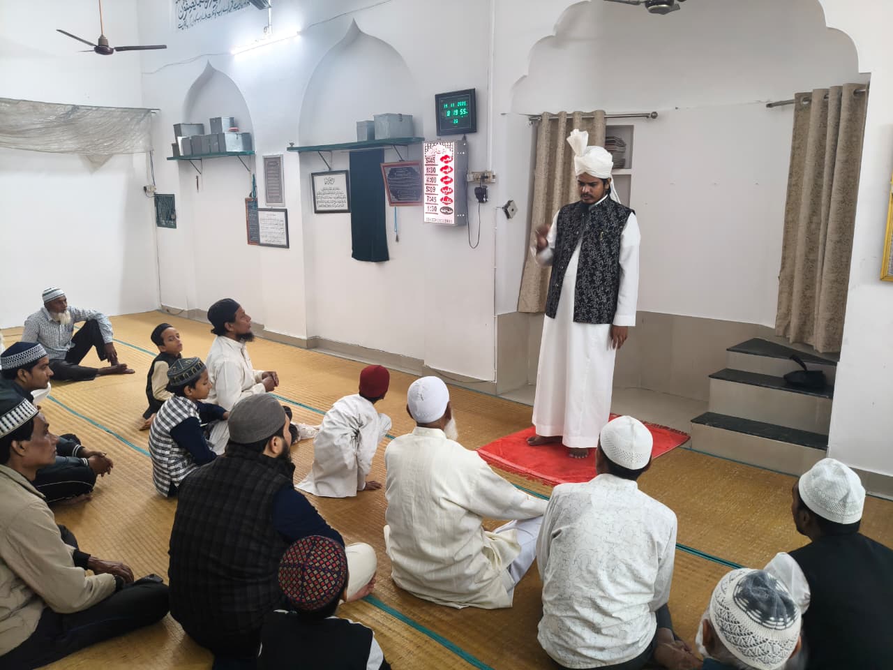 मुख्य वक्ता नायब काजी मुफ्ती मुहम्मद अजहर शम्सी ने कहा कि किसी भी मुसलमान से मुलाकात होने पर अस्सलामु अलैकुम (आप पर सलामती हो) कहकर सलाम करना सुन्नत है। यह सबसे महत्वपूर्ण अभिवादन है, जिसे जान-पहचान वाले और अनजान, दोनों को कहना चाहिए। सलाम के साथ हाथ मिलाना सुन्नत है। सलाम के साथ मुस्कुराना भी सुन्नत है, जो मुलाकात को और भी सौहार्दपूर्ण बनाता है। हदीस में बताया गया है कि जब दो मुसलमान मिलते हैं और हाथ मिलाते हैं, तो उनके अलग होने से पहले उनके गुनाह माफ कर दिए जाते हैं। मिलने पर एक-दूसरे के बारे में, उनके परिवार के बारे में खैरियत मालूम करनी चाहिए। मुलाकात के दौरान अच्छी, भली और सकारात्मक बातें करनी चाहिए, जो सामने वाले में ऊर्जा और प्रेरणा पैदा करे। जब दूसरा व्यक्ति बात कर रहा हो, तो उसकी बात को ध्यान से सुनना चाहिए, न कि उसकी बात काटकर अपनी बात शुरु कर देनी चाहिए। किसी के चेहरे पर बहुत देर तक नजरें गड़ाकर बात नहीं करनी चाहिए। मुलाकात के दौरान हमेशा अच्छी और भली बातें करनी चाहिए, जिससे सामने वाले के दिल में अच्छा महसूस हो। जहां तक संभव हो बैठकर बात करना बेहतर माना जाता है, खासकर खाते-पीते समय। मुलाकात खत्म करते समय भी सलाम करना उतना ही महत्वपूर्ण है, जितना कि शुरुआत में। इन शिष्टाचारों का पालन करना न केवल सुन्नत है, बल्कि इससे आपसी मुहब्बत और भाईचारा भी बढ़ता है।