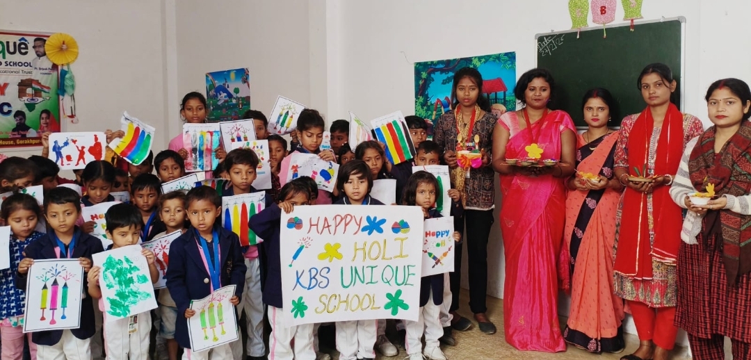 प्रधानाचार्या ने बच्चों को होली के बारे मे बताते हुए होलिका,हिरणयाकश्यप और भक्त प्रहलाद की कहानी सुनाते हुए होली पर्व को क्यूँ मानाया जाता है इसके बारे मे विस्तार पूर्वक बतायीं तथा कहीं की बच्चे रंगों से दूर रहें चेहरे पर रंग ना लगाएं,होली उत्सव को खुशियों के साथ मनाएं और आपसी भाई-चारा बना कर रखें। केबीएस यूनिक स्कूल मे 2 मार्च दिन सोमवार को सफ़ेद परिधान मे होली उत्सव भी मनाया जायेगा, जिसमे सभी बच्चों को लाल अबीर लगाकर आशीर्वाद देते हुए मिठाईयाँ वितरित किया जायेगा।