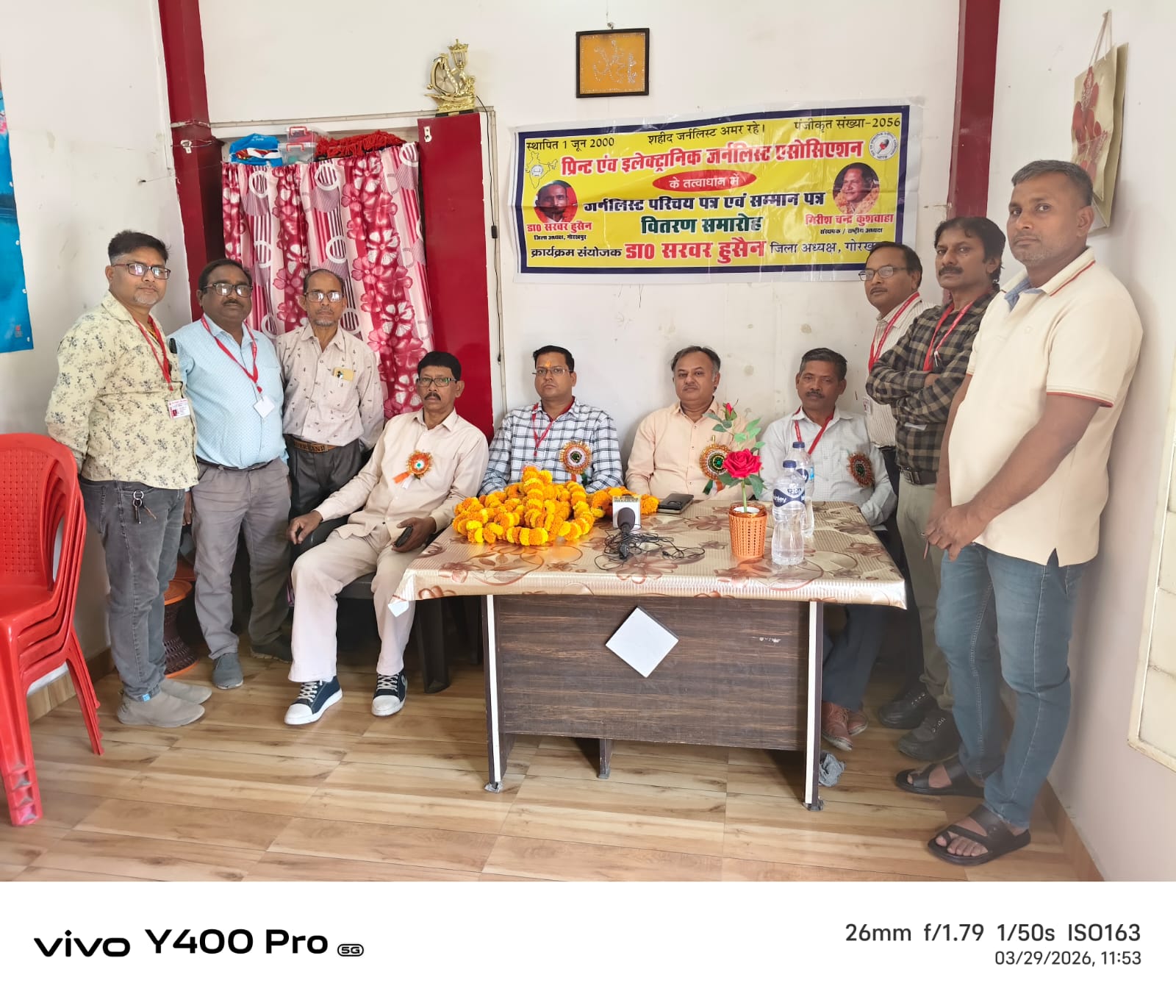 गोरखपुर प्रिंट एवं इलेक्ट्रॉनिक जर्नलिस्ट एसोसिएशन के पत्रकारों का 28वां परिचय पत्र वितरण समारोह हर्षउल्लास के साथ संपन्न हुआ समारोह में मुख्य अतिथि के रूप में रविशंकर पांडे एडवोकेट राष्ट्रीय सचिव अतिथि के रूप में दीपक केडिया महासचिव सतनारायण जायसवाल जिलाउपाध्यक्ष रहे समारोह का संचालन डॉक्टर सरवर हुसैन जिला अध्यक्ष गोरखपुर ने किया