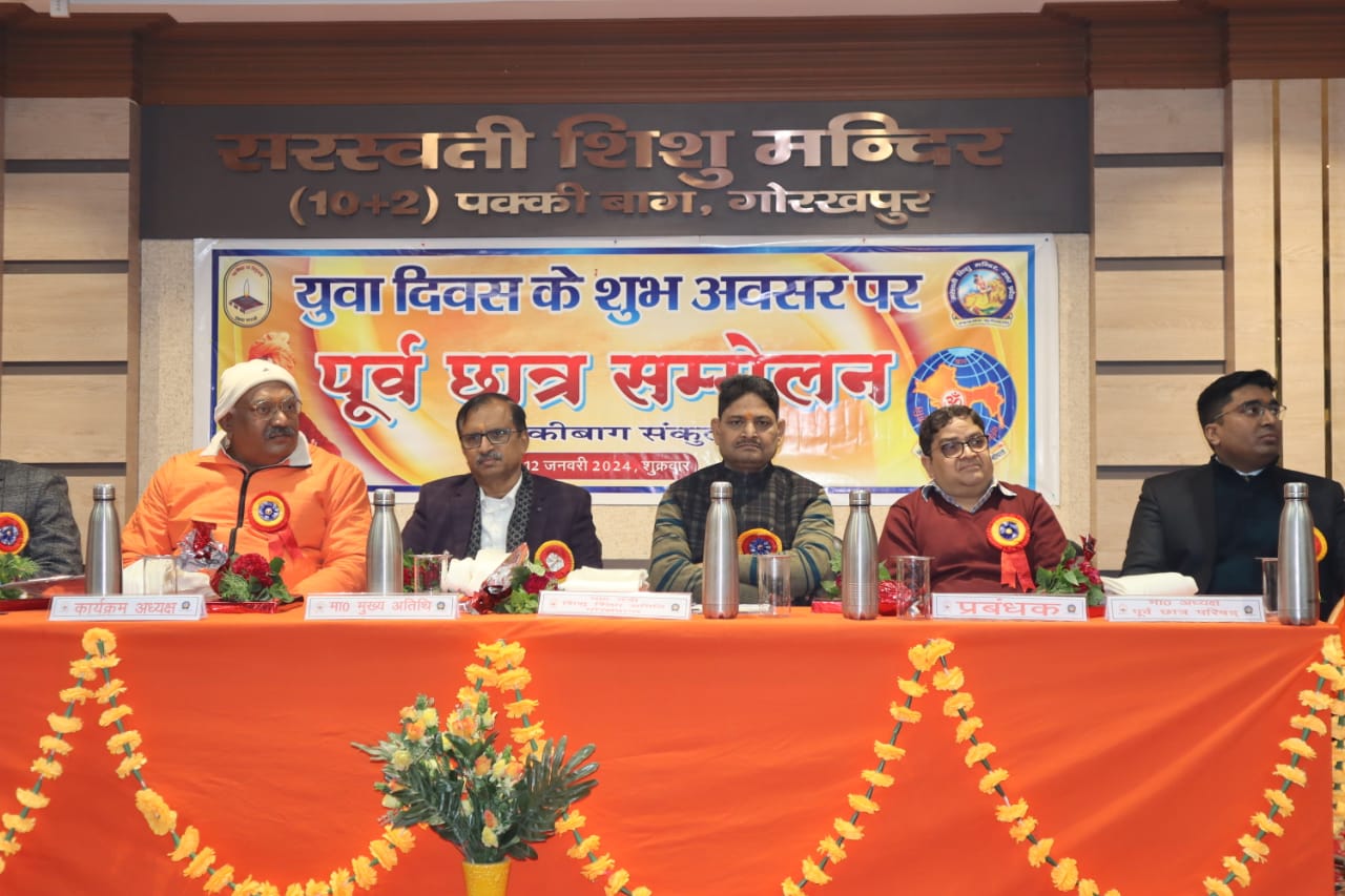 सरस्वती शिशु मन्दिर (10+2) पक्कीबाग गोररखपुर में आज युवा दिवस ‘’स्वामी विवेकानन्द जयंती’ के अवसर पर पक्कीबाग संकुल के ‘पूर्व छात्र सम्मेलन’ को संबोधित करते हुए डॉ मंगलेश कुमार श्रीवास्तव महापौर गोरखपुर ने कहा कि शिशु मंदिर की सोच ये नही है की मशीनी मानव पैदा करें बल्कि उनका उद्देश्य ये है की विवेकानन्द जैसे वीरों को तैयार करे। उन्होंने कहा कि व्यक्ति युवा केवल आयु से नहीं होता है बल्कि अपने विचारों से होता है।