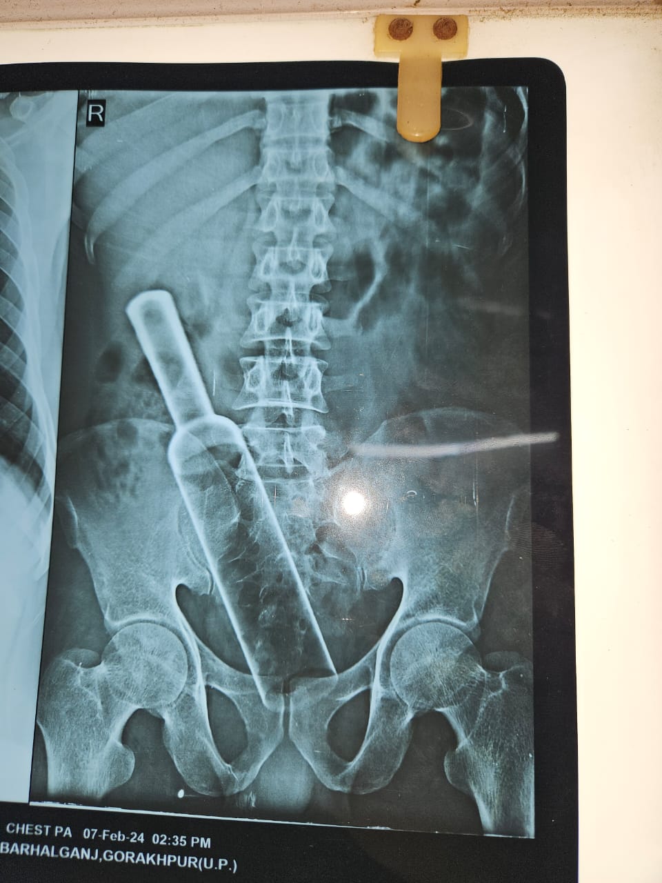 शाही ग्लोबल हॉस्पिटल में एक मरीज़ पेट का दर्द करके आया उसे चेक किया गया तो उसके पेट में लोहे जैसी मजबूत कोई चीज दिख रही थी .जांच करने पर पता चला की लोहे की कोई चीज है जो दो फीट लंबी और 8 सेंटीमीटर चौड़ी है. मरीज से पूछा गया कि यह लोहे की चीज पेट में कैसे गई तो वह ठीक से नहीं बता रहा था. जब आंतों का चेक हुआ तो आंतों के अंदर इतनी बड़ी लोहे की बेलन मिली .चुकी लोहे की बेलन की वजह से संक्रमण काफी फैल रहा था इसलिए इसका इमरजेंसी ऑपरेशन करके लोहे की इस बेलन को बाहर निकल गया .मरिज पूरी कहानी को ठीक से नहीं बता पा रहा था लेकिन यह कह रहा था कि यह गलती से हुआ है. वह बेलन को अपने मल द्वार के रास्ते अंदर धीरे-धीरे डाला जब बेलन पूरा अंदर गया तो बेलन का एक सिर जिसे मुट्ठी कहते हैं वह टूटकर उसके हाथ में रह गया और पूरी बोलन सहित ऊपर वाला सिर( मुट्ठी )पेट के अंदर फस गया ऐसी अजीब गरीब घटनाएं किताबों में पढ़ी जाती हैं लेकिन रियल लाइफ में कम होती है. एक तरह की मानसिक बीमारी है जो सेक्सुअल सेटिस्फेक्शन के लिए किया जाता है कभी-कभी यह अपराध के रूप में भी दूसरों द्वारा किया जाता है .मरीज का नाम उमेश उम्र 32 साल पिता का नाम रमेश ग्राम अस्थवला बेला बीरभान है. मरीज का नाम छिपाया गया है .