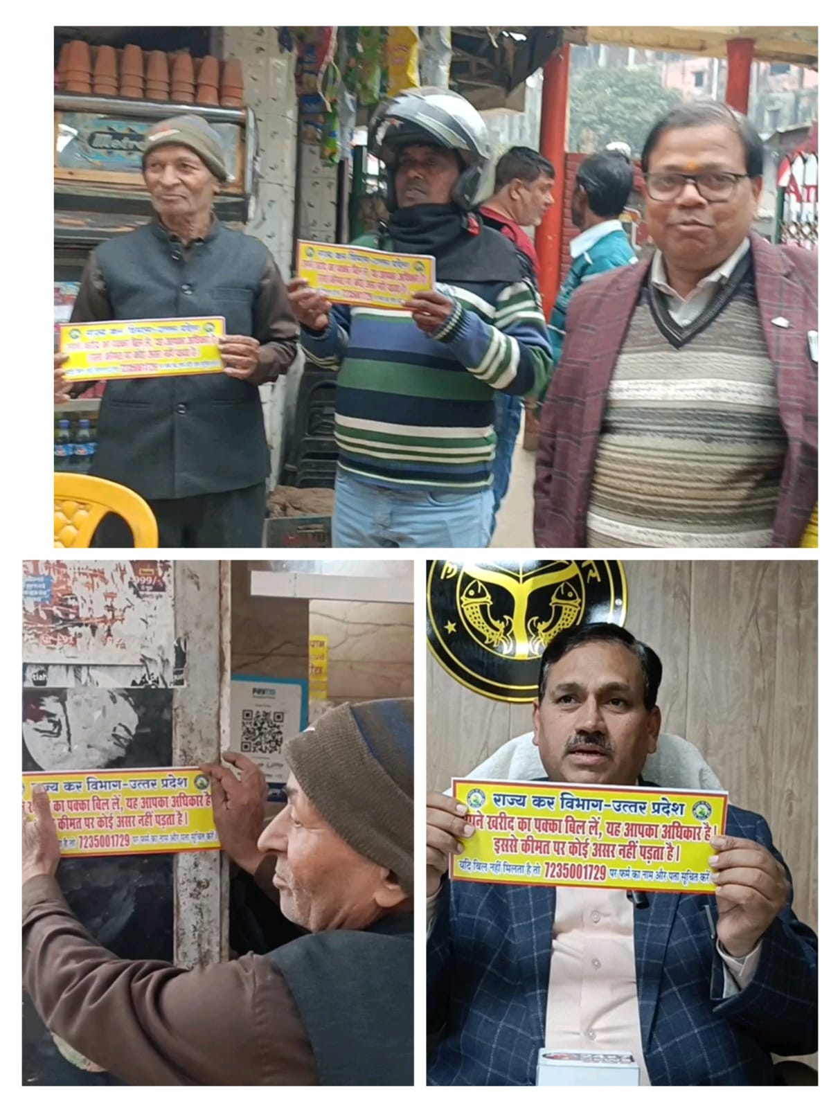 मीडिया से बात करते हुए वाणिज्य कर विभाग के अपर आयुक्त ग्रेड वन राजेश सिंह ने बताया कि राज्य कर विभाग उत्तर प्रदेश के निर्देश पर 1 दिसंबर से 31 दिसंबर तक उपभोक्ताओं को जागरूक करने के लिए गोरखपुर और बस्ती मंडल के विभिन्न जिलों में दुकानों पर पोस्टर चिपका कर ग्राहकों को जागरूक करने का काम किया जा रहा है कि अपने सामान की खरीदारी करते समय पक्का बिल ले, यह आपका अधिकार है इससे कीमत पर कोई असर नहीं पड़ता है ग्राहक यह समझते हैं कि पक्का बिल लेने से कीमत पर असर पड़ेगा लेकिन ऐसा नहीं है क्योंकि दुकानदार द्वारा जीएसटी जोड़कर ही सामान की बिक्री की जा रही है ऐसे में आप झांसे में ना आए जागरूक ग्राहकों के लिए विभाग द्वारा इनाम भी दिया जाएगा जो हर सामान का पक्का बिल लेते हैं। पक्का बिल लेने से सरकार का राजस्व भी बढ़ेगा और ग्राहकों को इसका फायदा भी मिलेगा।